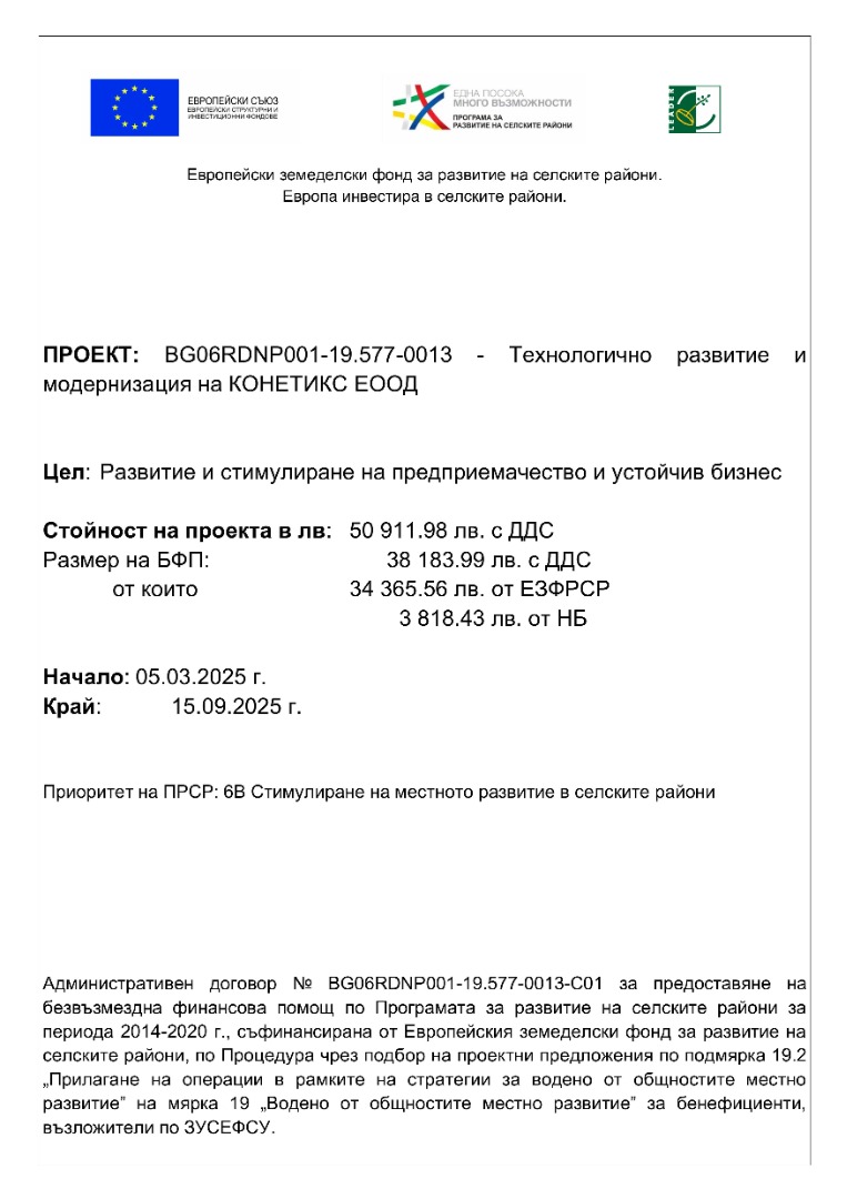 Технологично развитие и модернизация на КОНЕТИКС ЕООД